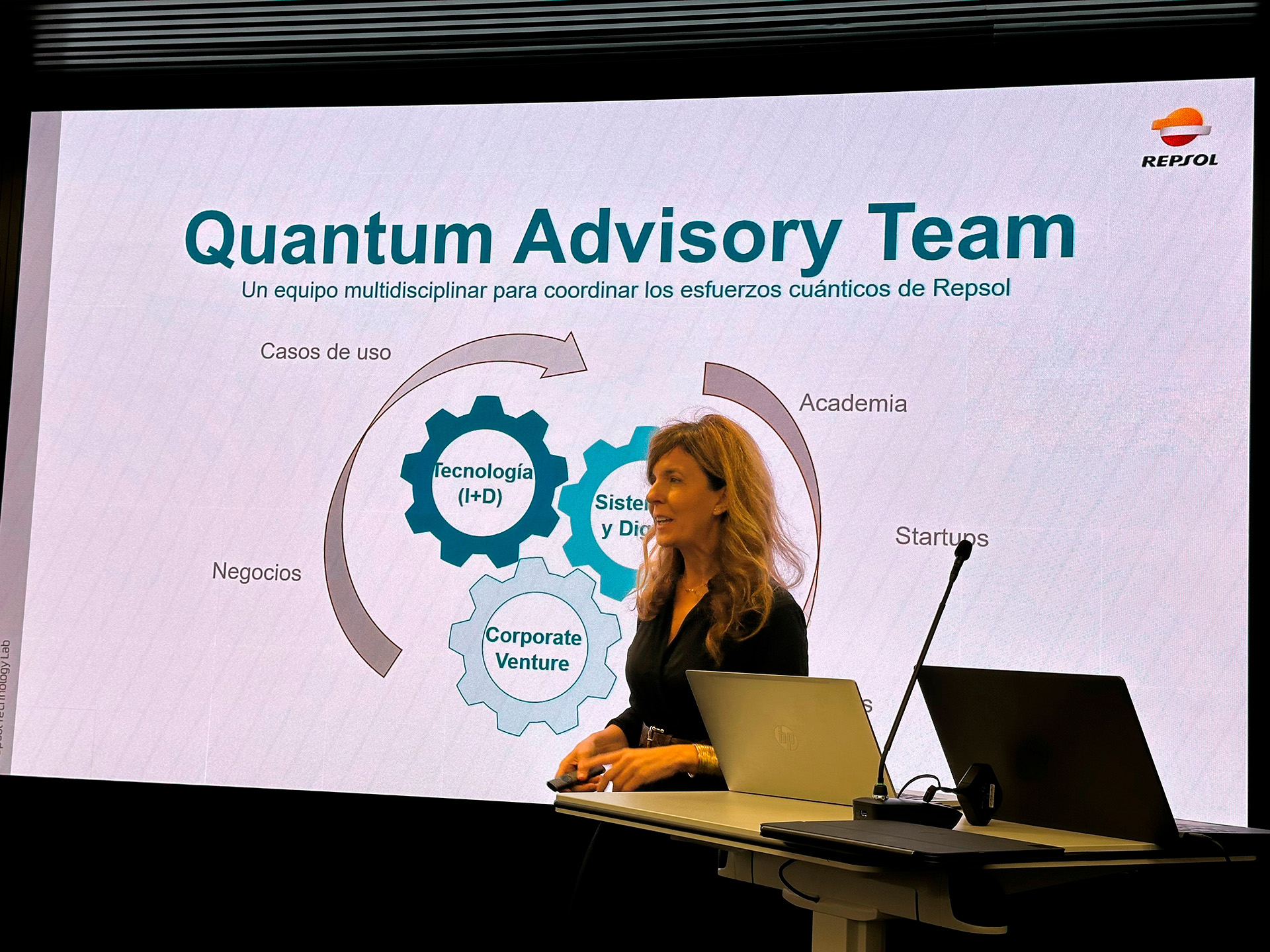 Throughout the event, Ricardo Enríquez, Head of Quantum Computing at Repsol, shared his knowledge on the role of quantum computing in the hydrogen value chain, explaining how this technology has the potential to transform processes and change the way we approach the challenges faced by the energy industry. Emilia Martínez Serrano, Director of Optimisation, Industrial Assets, E&P and Tech at Repsol, also gave her vision on the roll-out and use of quantum technology at Repsol. This saw her highlight the importance of R&D in this area as well as the need for hybrid technology to find the best solution in each case.